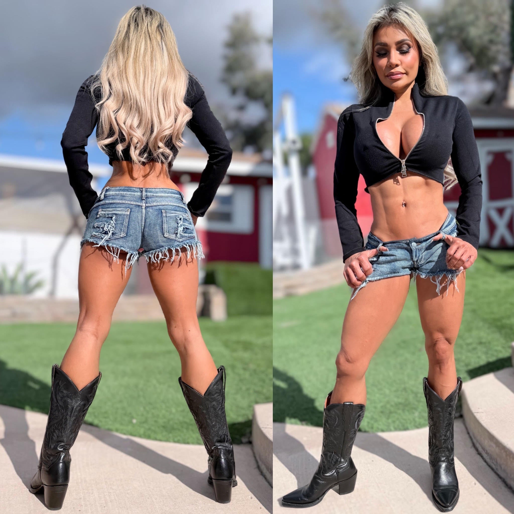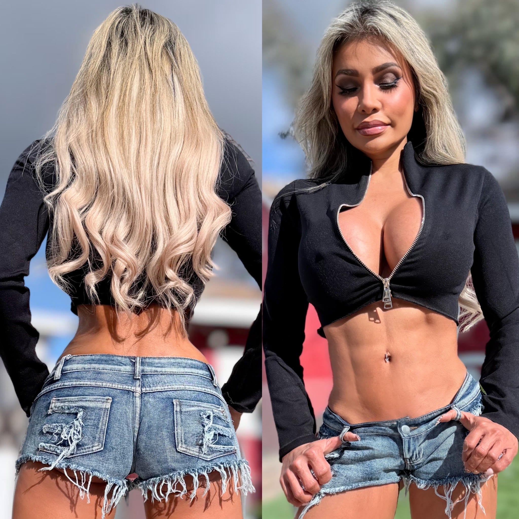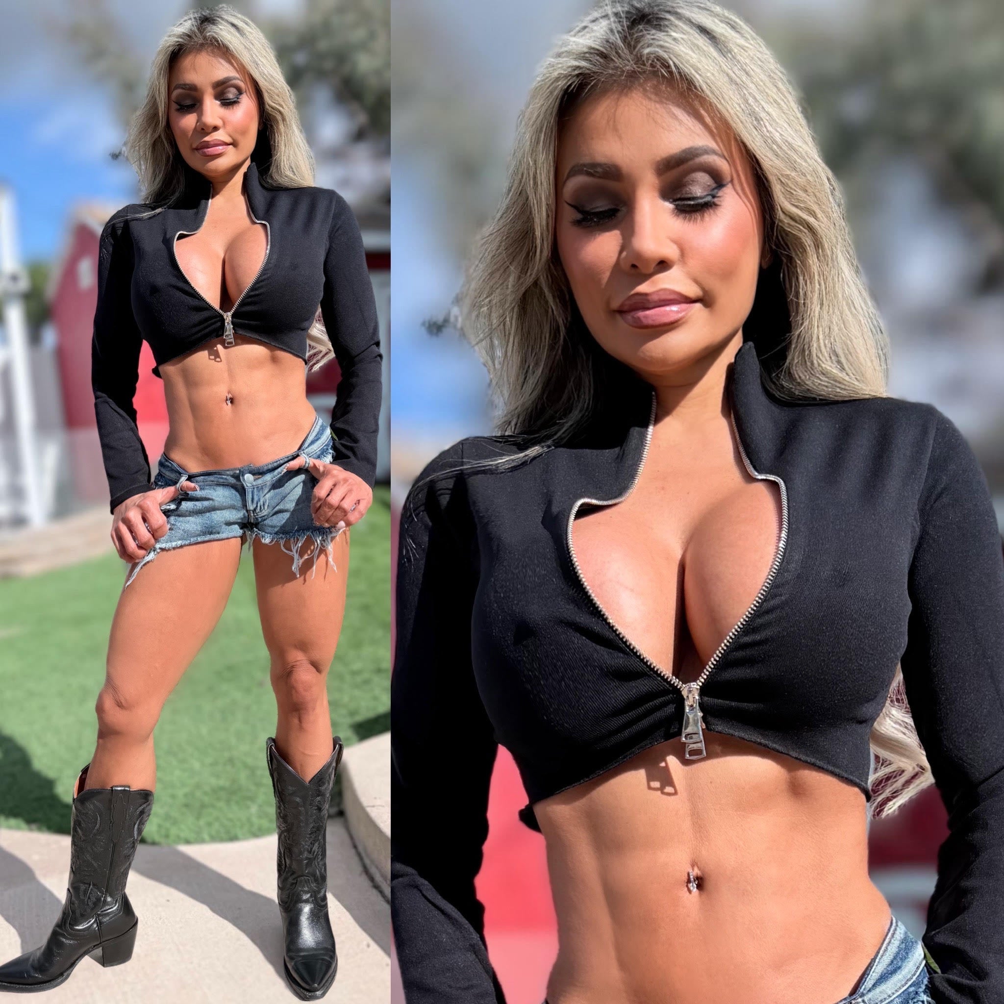 "RICH BLACK STRETCH DUAL ZIP KNIT TOP"