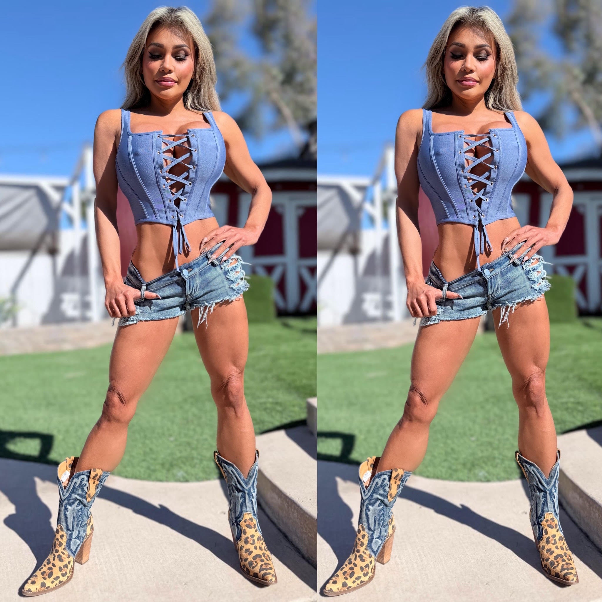 "RICH SMASH ME BLUE JEAN CORSET TOP"