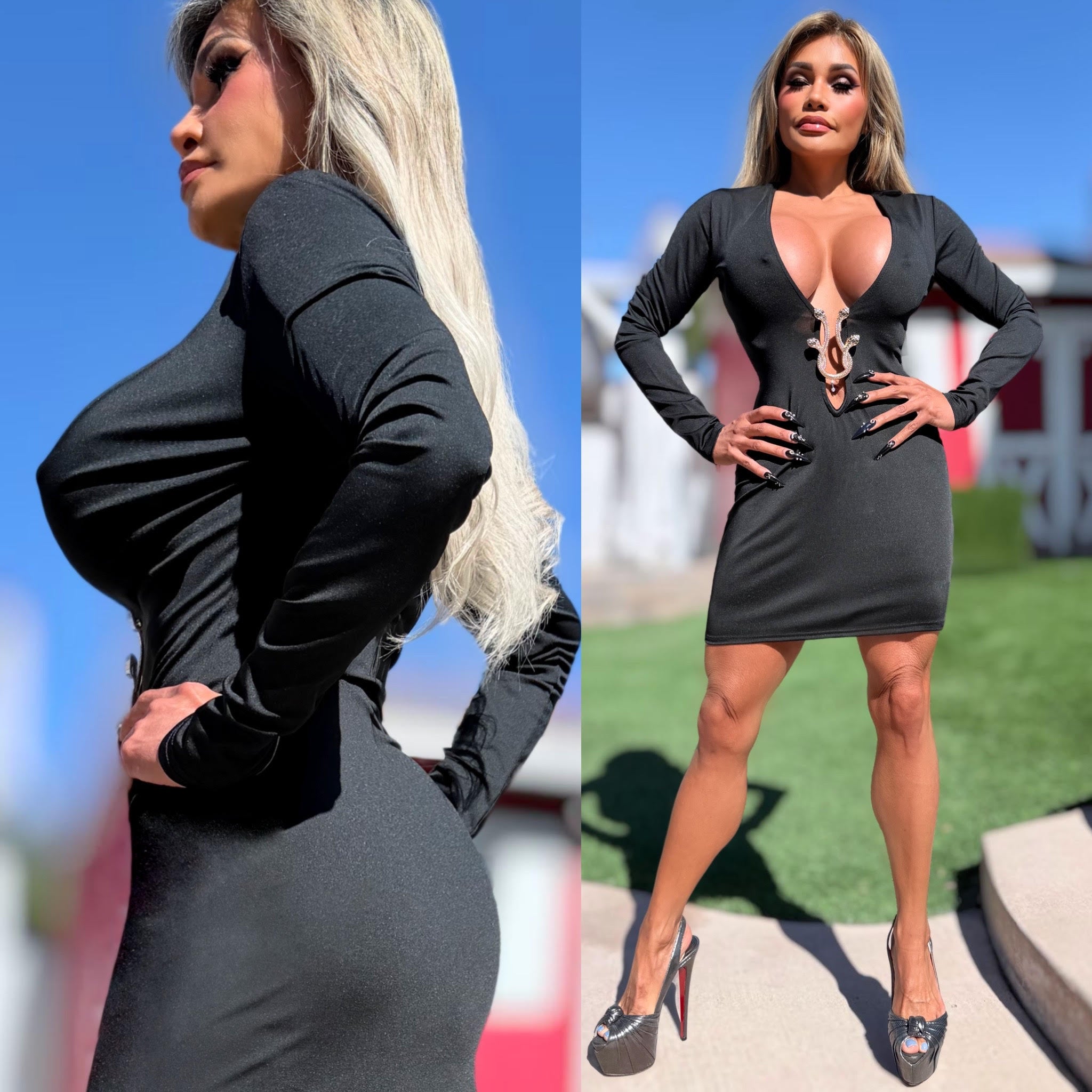 Gold SNAKE Accent, EXTREME PLUNGE Super Stretch PENCIL FIT 🍸🍸🍸